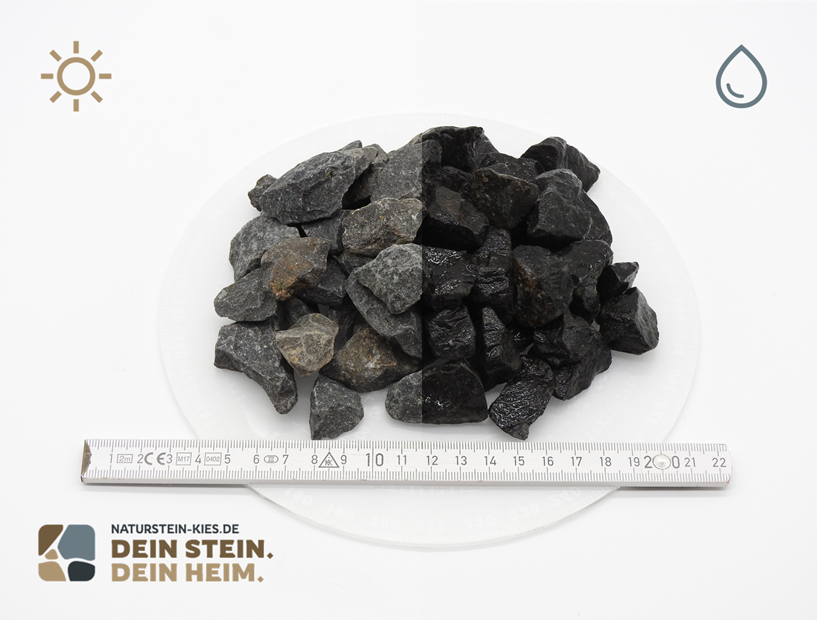Kostenlose Lieferung (DE)Basalt ist ein faszinierendes Material, das in trockenem Zustand anthrazitfarben erscheint und bei Nässe tiefschwarz wird. Dieses dunkelste Material bringt eine elegante Note in jeden Garten- und Landschaftsbau. Durch seine Nachhaltigkeit und regionale Verfügbarkeit ist es nicht nur umweltfreundlich, sondern auch ästhetisch ansprechend. Basalt eignet sich hervorragend für Wege, Terrassen und als dekoratives Element in Grünanlagen. Die Vielseitigkeit dieses Gesteins macht es zu einer idealen Wahl für kreative Landschaftsgestaltungen und trägt zur Schaffung harmonischer Außenräume bei.