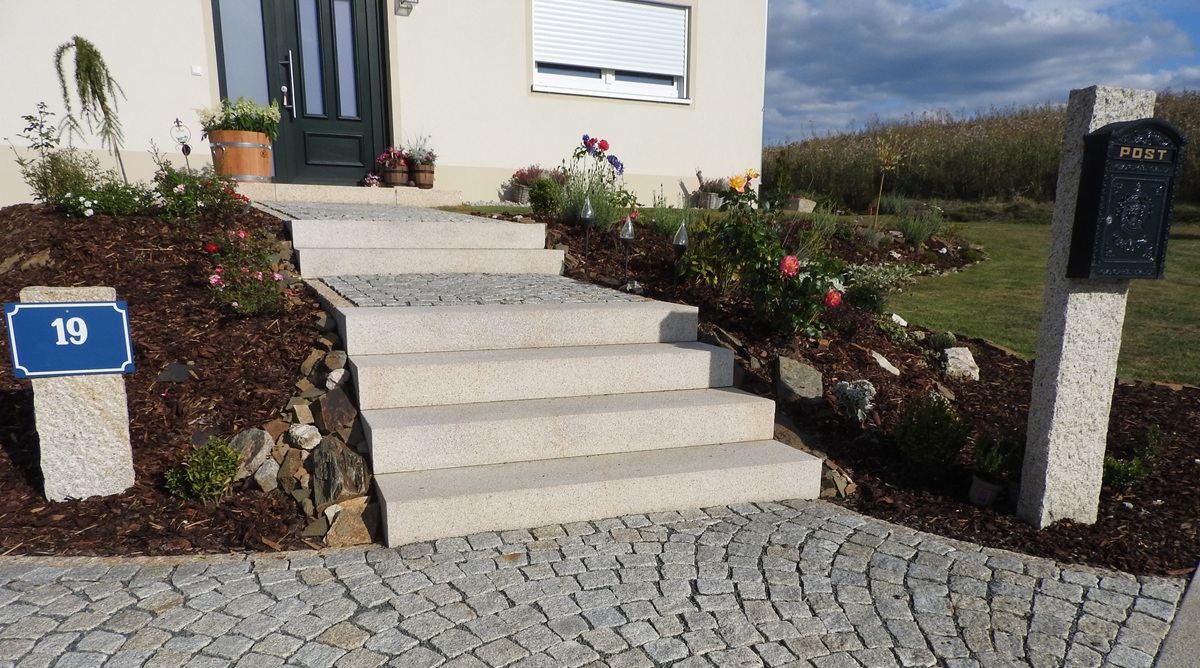 Dank ihrer hervorragenden Eigenschaften, wie der hohen Druckbeständigkeit und der Witterungsbeständigkeit, sind diese Granit Blockstufen eine nachhaltige und pflegeleichte Wahl. Sie sind frost- und salzbeständig und garantieren Langlebigkeit.