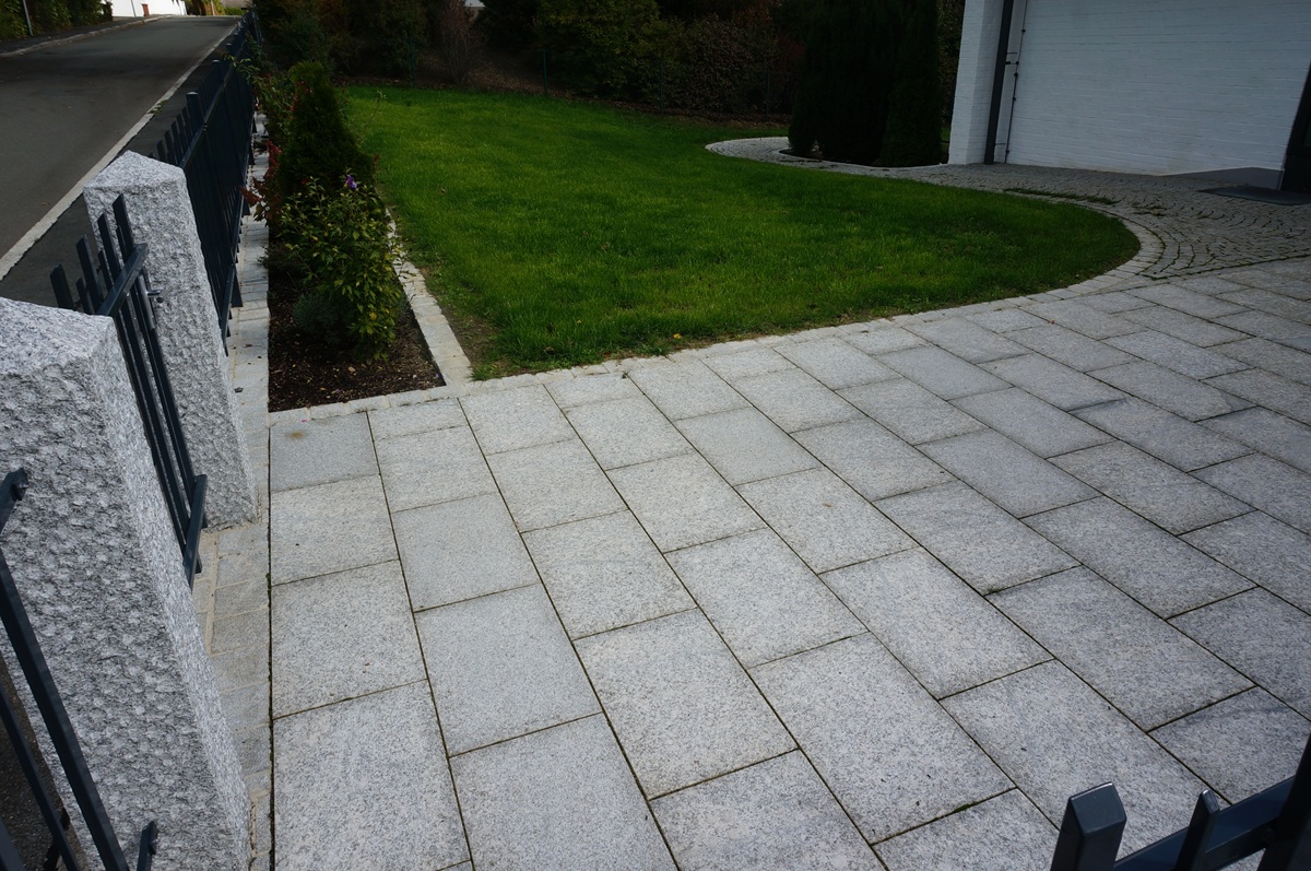 Besonders hervorzuheben sind ihre hervorragenden Eigenschaften: Als Tiefengestein bieten sie eine hohe Druckbeständigkeit und sind zudem witterungsbeständig. Die Handhabung ist unkompliziert, da die Platten problemlos schwimmend auf Frostschutz oder Edelsplitt verlegt werden können. Ein weiterer Vorteil ist die Unempfindlichkeit gegenüber Öl und Fett; Flecken verschwinden nach kurzer Zeit durch natürliche Witterungseinflüsse von selbst.