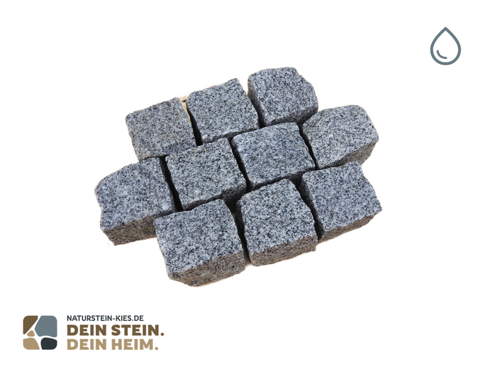 Ideal geeignet für Einfahrten, Höfe, Wege und Plätze, behalten die grauen Granit Pflastersteine dauerhaft ihr ansprechendes Aussehen. Ihr klassisches Design erlaubt vielfältige Einsatzmöglichkeiten, sei es als dekorative Einfassung von Gartenbereichen oder als stilvolle Abgrenzung.