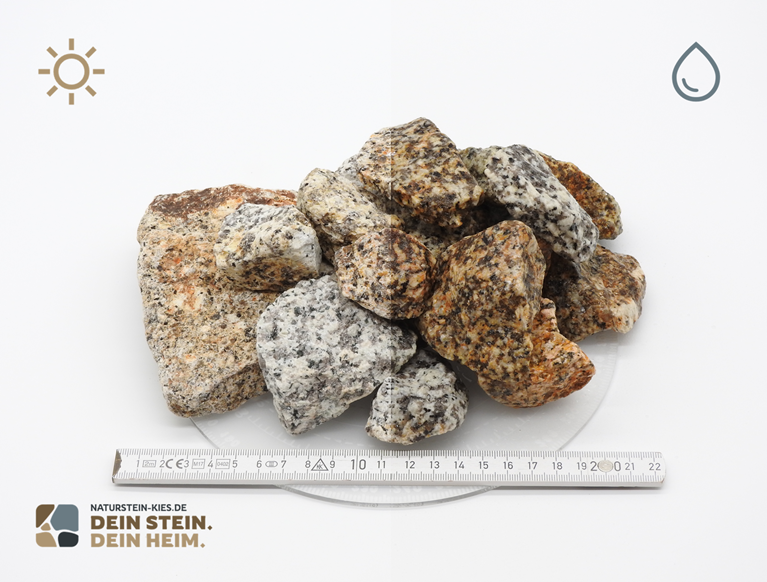 Mit hervorragenden Eigenschaften wie Druckbeständigkeit und Wetterfestigkeit ist unser Granit ideal für Dekorsplitt, als Gabionenfüllung und Fugensand. Aus tiefengestiegenem Gestein gefertigt, ist er nicht nur nachhaltig, sondern auch regional verfügbar. Verleihen Sie Ihrem Garten mit unserem Granit ein ganz besonderes Flair!