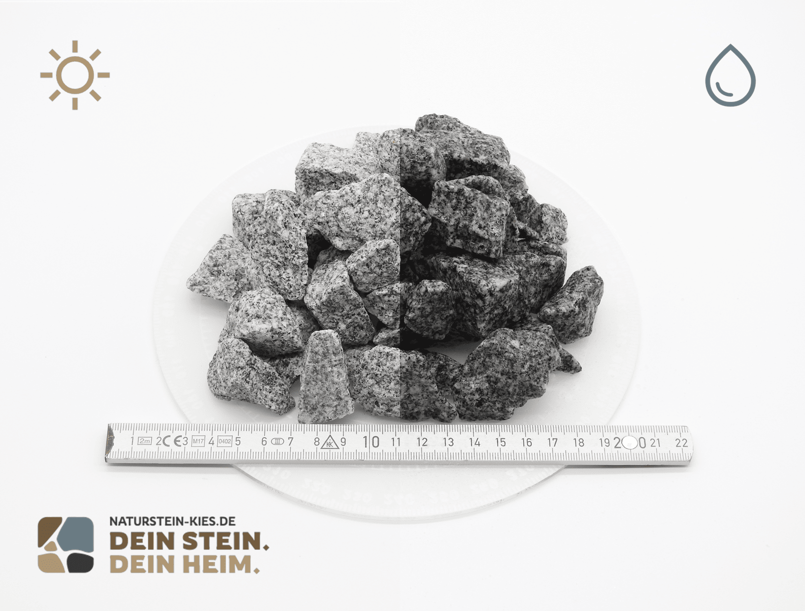 ist. Wenn beispielsweise Granit-Ziersplitt in der Körnung von 16-32 mm verwendet