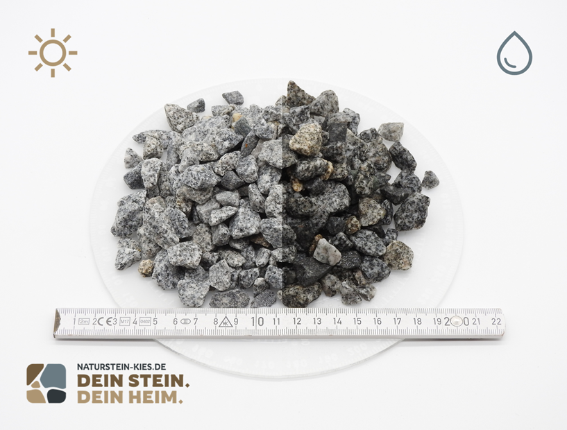 ist. Wenn beispielsweise Granit-Ziersplitt in der Körnung von 16-32 mm verwendet