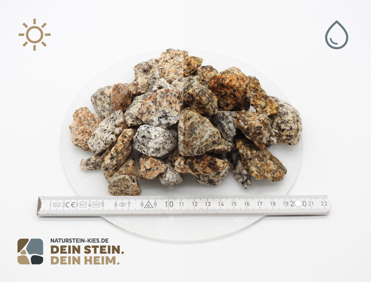 Mit hervorragenden Eigenschaften wie Druckbeständigkeit und Wetterfestigkeit ist unser Granit ideal für Dekorsplitt, als Gabionenfüllung und Fugensand. Aus tiefengestiegenem Gestein gefertigt, ist er nicht nur nachhaltig, sondern auch regional verfügbar. Verleihen Sie Ihrem Garten mit unserem Granit ein ganz besonderes Flair!