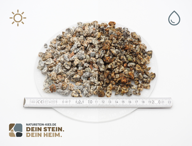 Mit hervorragenden Eigenschaften wie Druckbeständigkeit und Wetterfestigkeit ist unser Granit ideal für Dekorsplitt, als Gabionenfüllung und Fugensand. Aus tiefengestiegenem Gestein gefertigt, ist er nicht nur nachhaltig, sondern auch regional verfügbar. Verleihen Sie Ihrem Garten mit unserem Granit ein ganz besonderes Flair!