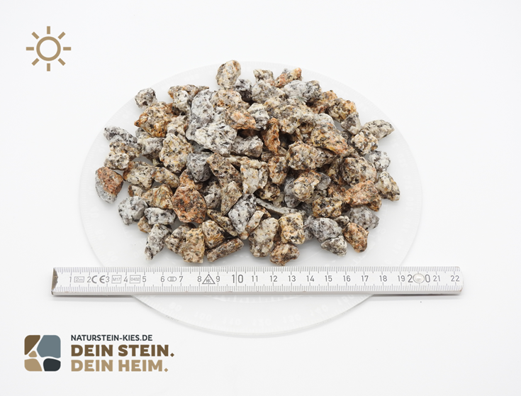 Mit hervorragenden Eigenschaften wie Druckbeständigkeit und Wetterfestigkeit ist unser Granit ideal für Dekorsplitt, als Gabionenfüllung und Fugensand. Aus tiefengestiegenem Gestein gefertigt, ist er nicht nur nachhaltig, sondern auch regional verfügbar. Verleihen Sie Ihrem Garten mit unserem Granit ein ganz besonderes Flair!