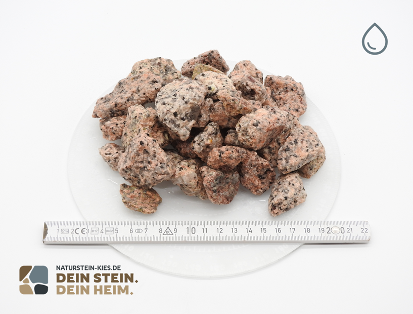 ist. Wenn beispielsweise Granit-Ziersplitt in der Körnung von 16-32 mm verwendet