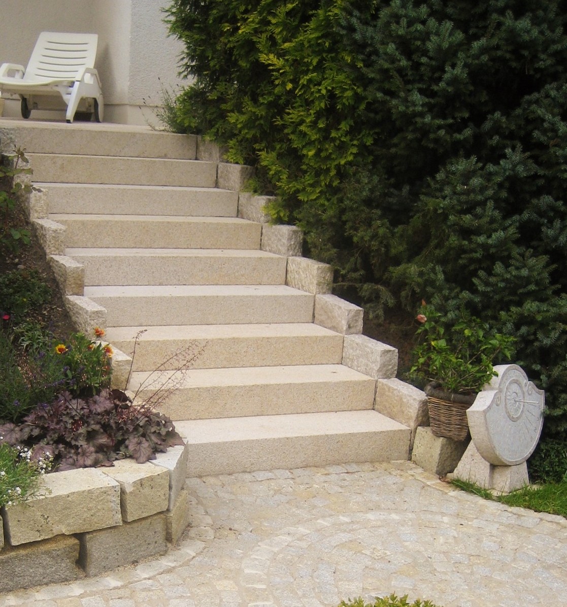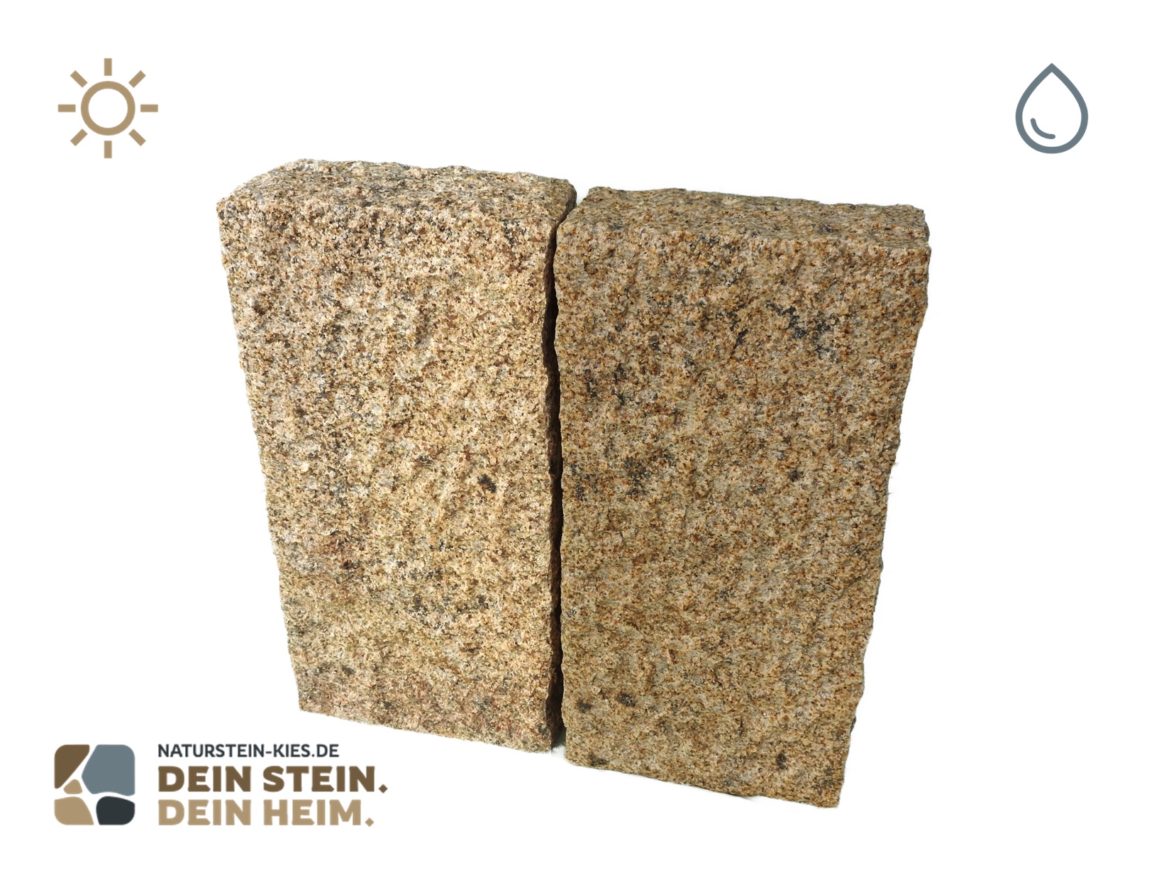 Besonders reizvoll ist die Möglichkeit, Granit Stelen mit anderen Materialien und Farbkombinationen zu kombinieren. Egal, ob Sie mit Holz, Metall oder weiteren Natursteinen arbeiten möchten – die gelben Granit Stelen fügen sich harmonisch in jedes Gesamtkonzept ein. Um das Bild im Garten zu vervollständigen, bieten wir auch passende Naturstein-Terrassenplatten, Mauersteine, Zaunsäulen, Bordsteine und Pflastersteine an.