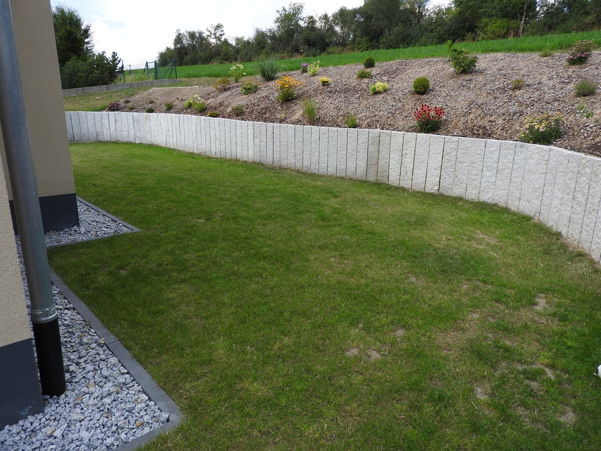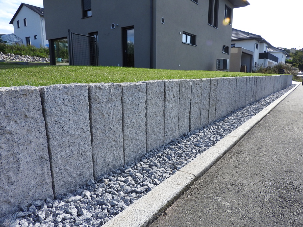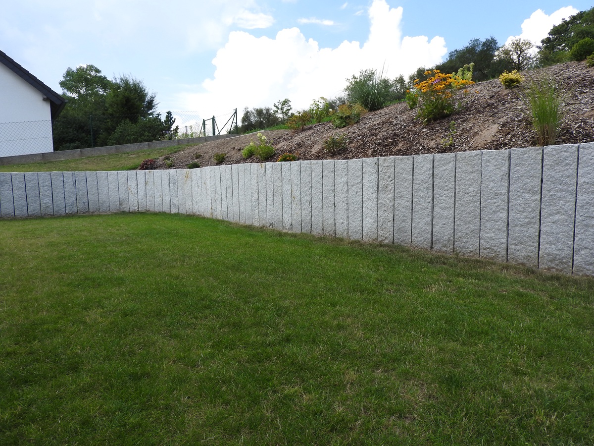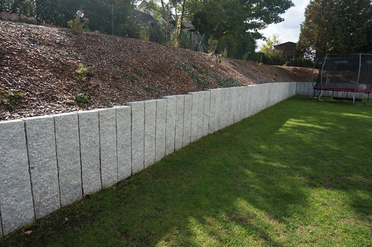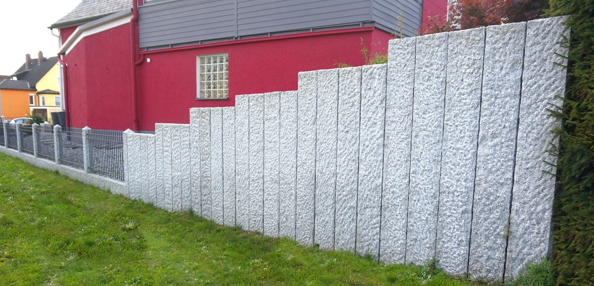 Granit Stelen, oft auch als Palisaden bezeichnet, zeichnen sich durch ihre graue, Salz- und Pfeffer farbige Optik und die allseitig gespitzte Oberfläche aus, die eine natürliche Ästhetik schafft. Diese Stelen sind nicht nur eine attraktive Lösung zur Abgrenzung von Gartenbereichen, sondern bieten auch praktische Vorteile: sie stabilisieren Böschungen und Hanglagen ohne zusätzliche Verfugung, was Rußbildung verhindert und ihre Langlebigkeit garantiert.