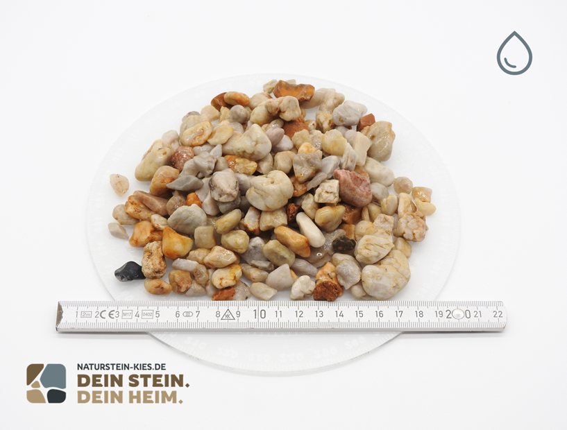 Isarkies, aus Quarz, zeichnen sich durch ihre natürliche Farbgebung von Weiß bis Gelblich aus. Sie sind rund und haben keine scharfen Kanten, was sie ideal für den Einsatz in Gärten macht. Durch lange Zeiträume des Wasserflusses wurden diese Flusskiesel sanft geschliffen, sodass sie perfekt in die Umrandung von Gartenteichen und Bachläufen passen. Sie dienen nicht nur als dekoratives Element, sondern auch als Spritzschutz und tragen zur nachhaltigen Gestaltung regionaler Landschaften bei. Isarkies vereinen Ästhetik und Umweltbewusstsein in einem harmonischen Gesamtbild.
