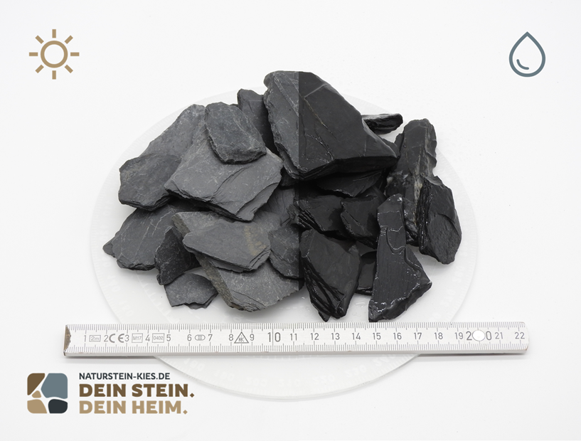 Kostenlose Lieferung (DE)Schiefer Ziersplitt ist eine nachhaltige und regionale Wahl für Garten- und Landschaftsbau, ideal für sonnige Plätze. Sein hitze- und frostbeständiges Material speichert tagsüber Wärme und gibt sie in kalten Nächten an Boden und Pflanzen ab. Allerdings sollte Schiefersplitt nicht großen physischen Belastungen ausgesetzt werden, da das relativ weiche Gestein bei hoher Druckbelastung brechen könnte. Aus diesem Grund ist die Verwendung in Einfahrten oder auf Parkplätzen nicht empfehlenswert. Setzen Sie Schiefer Ziersplitt gezielt ein und profitieren Sie von seinen ästhetischen und klimatisierenden Eigenschaften in Ihrem Garten.